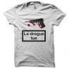 Shirt blanc avec logo La drogue c'était mieux avant. Shirt 100% coton 170g. homme et femme.